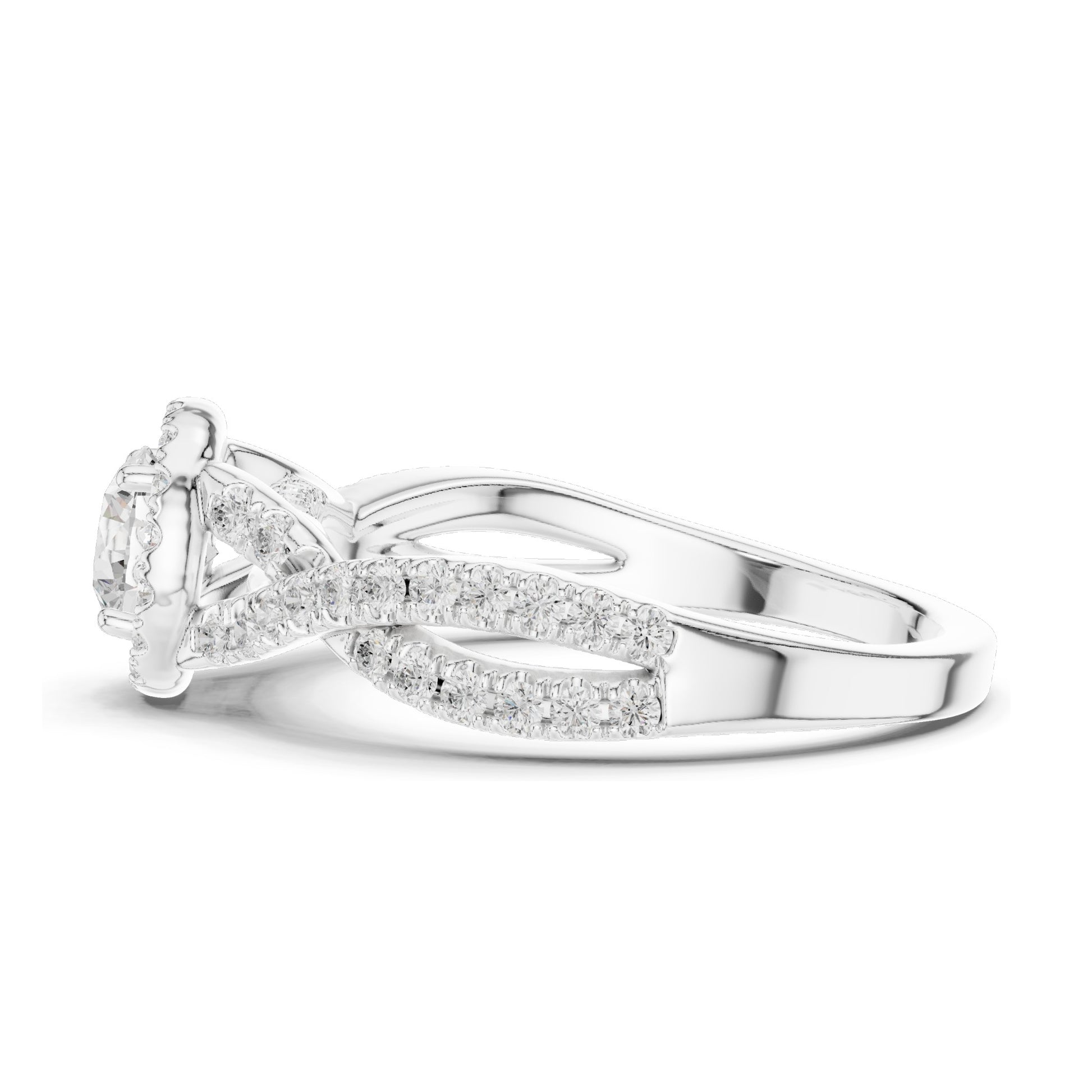 Design: Elegant halo setting with a sparkling diamond-encrusted band
