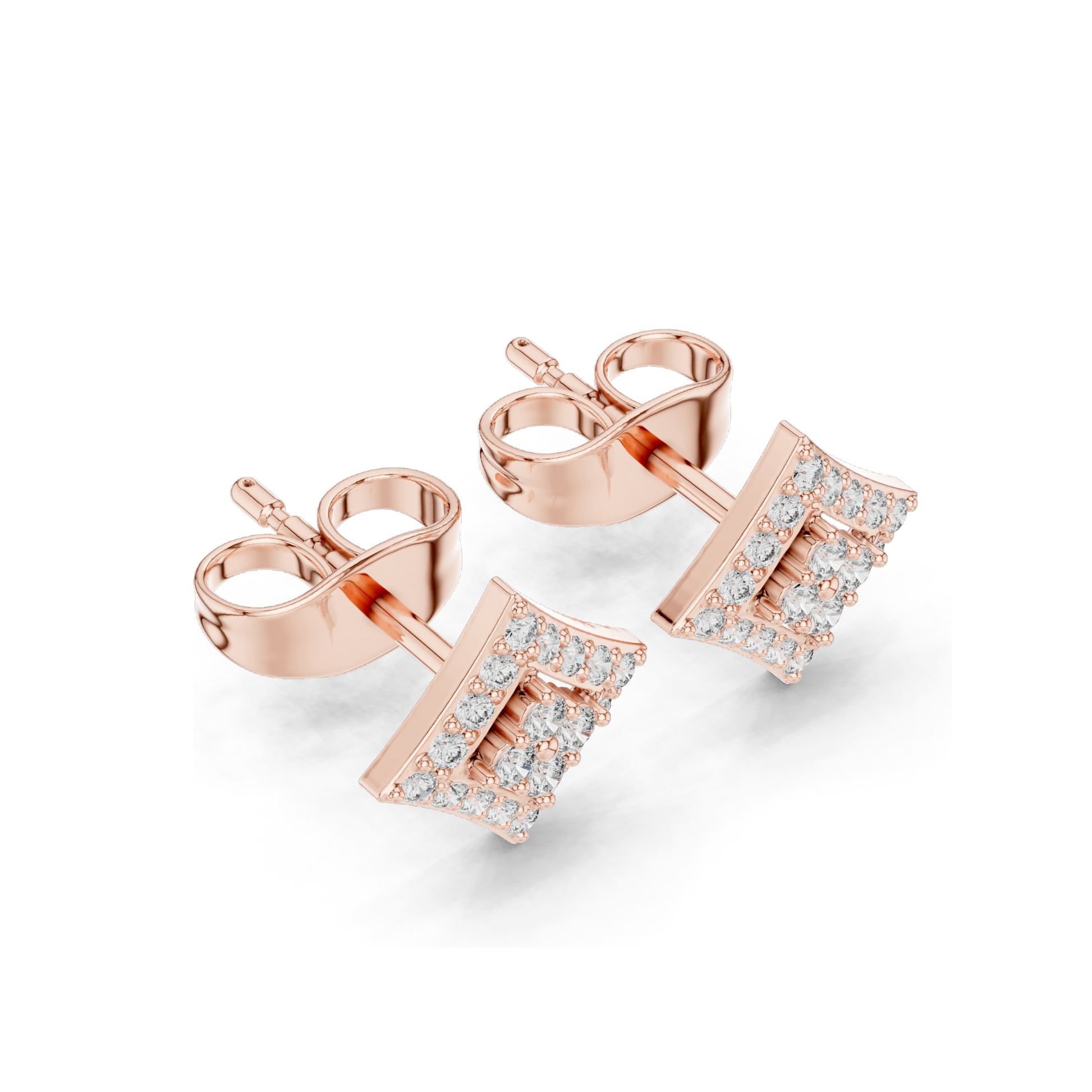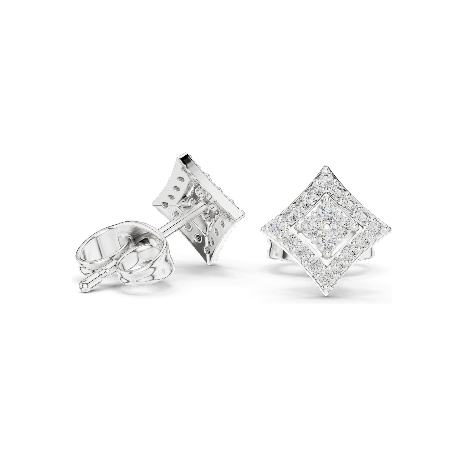 Each pair is expertly handcrafted in a sleek kite-shaped double-layer design, giving the appearance of a larger center diamond while offering a unique and luxurious touch. The earrings are available in 18KT, 14KT, and 10KT solid gold (Rose, Yellow, White), as well as 925 Sterling Silver, allowing full customization based on your style and budget.