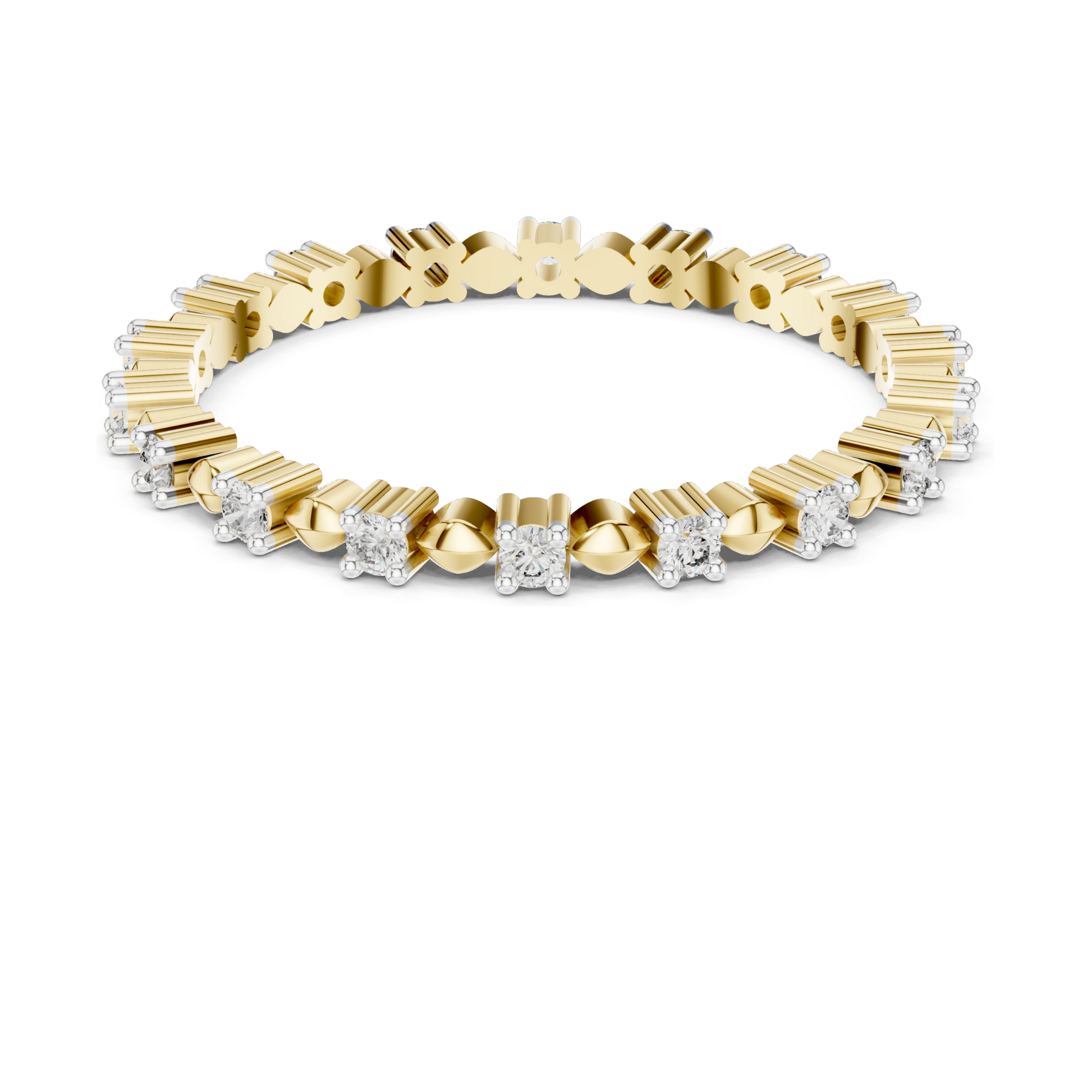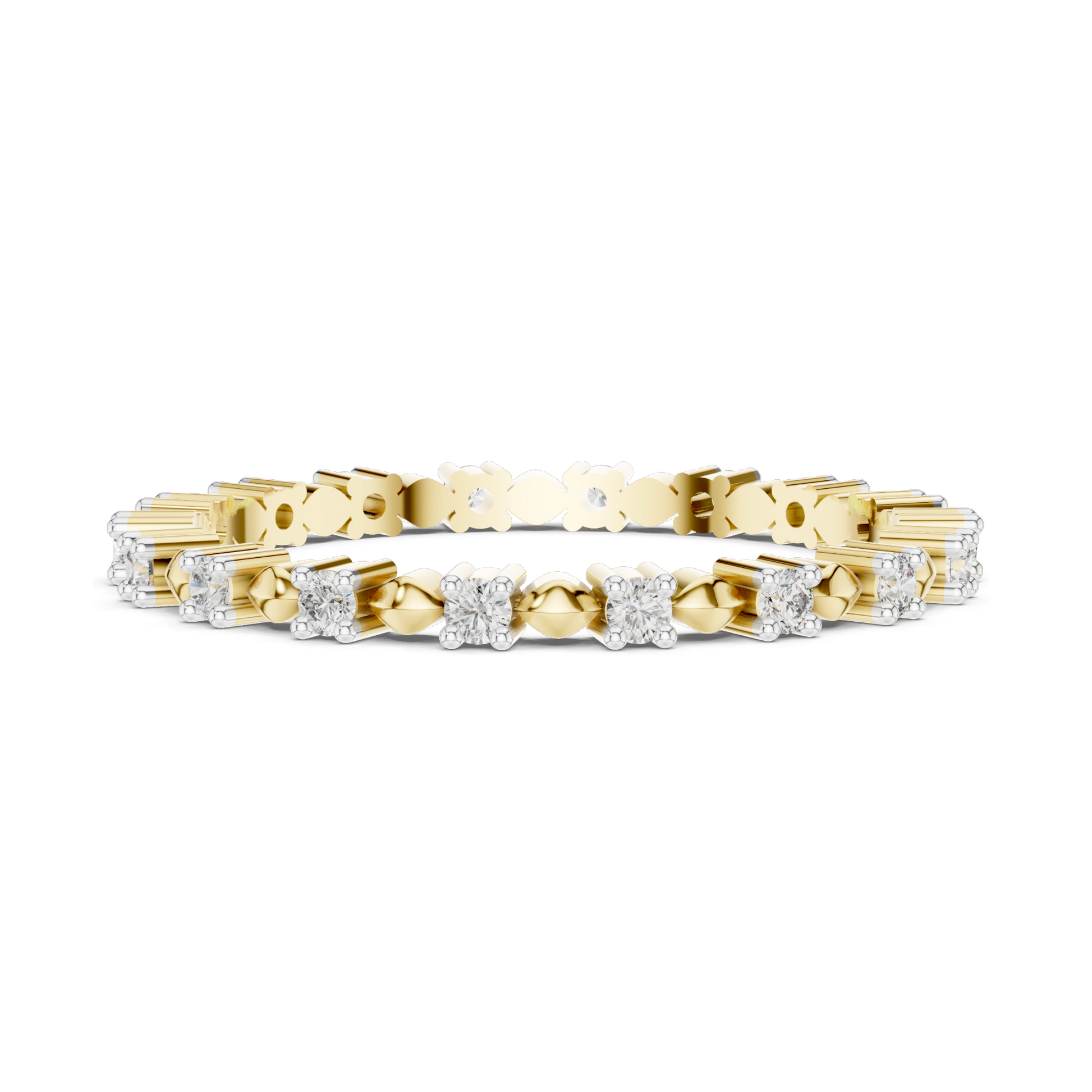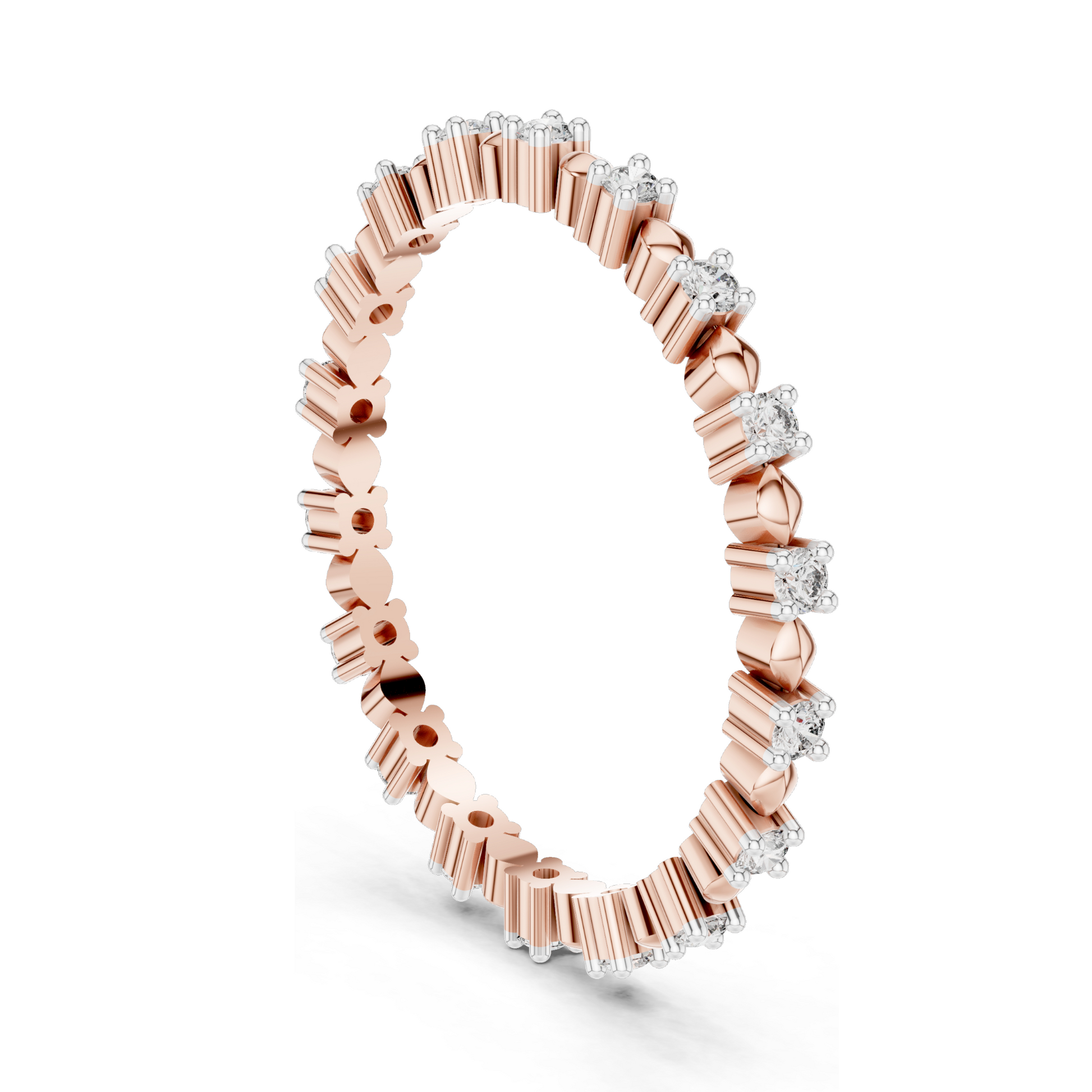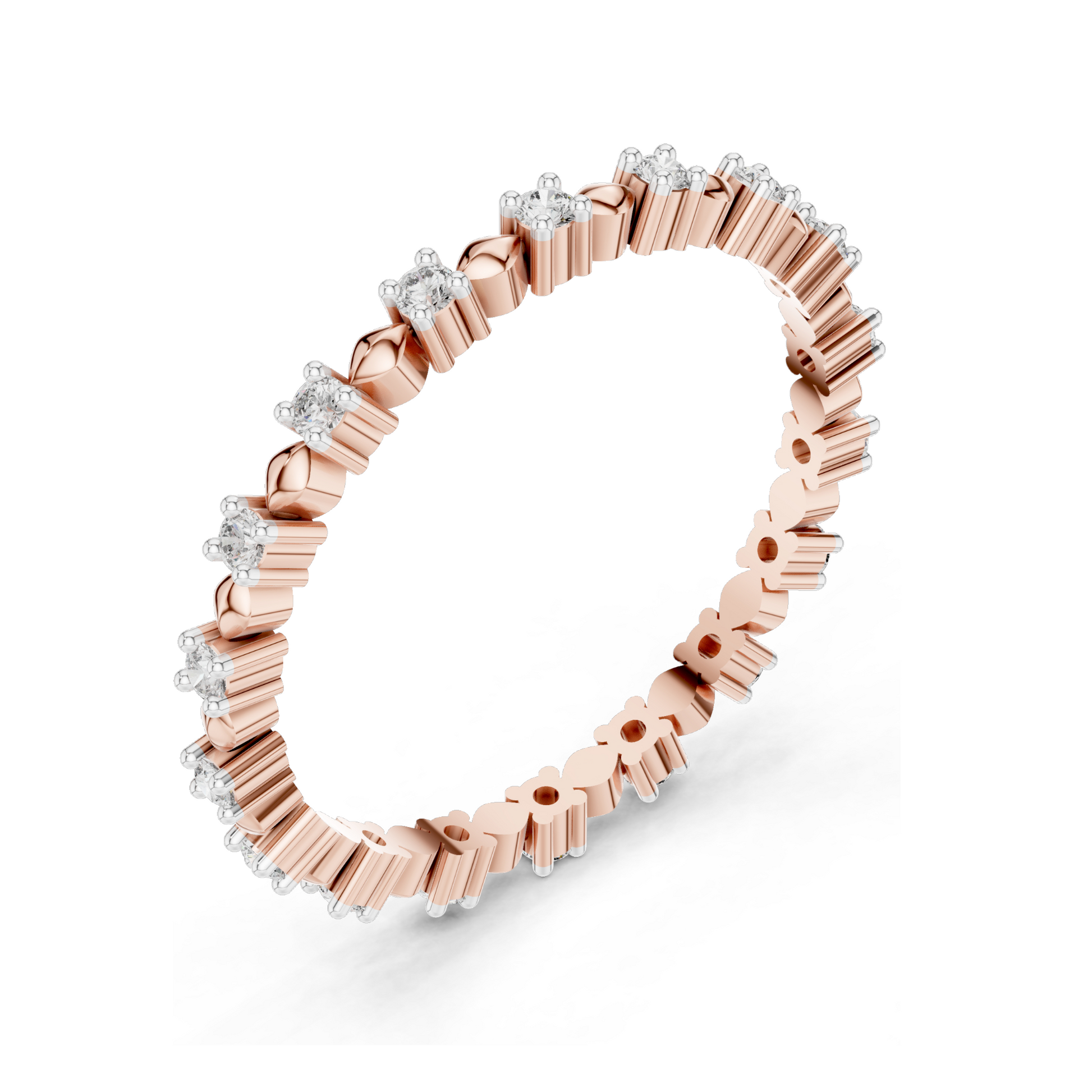 The ring features lab-grown diamonds, each with VVS-VS clarity and EF color (CVD technology), offering a stunning display of sparkle. The diamonds are expertly set in a sleek band that weighs just 1.95 grams, with the choice of 18KT, 14KT, 10KT gold, or 925 sterling silver in rose, yellow, or white gold finishes. Additionally, Moissanite stones are available as a more budget-friendly option, allowing you to enjoy incredible brilliance at a lower price.