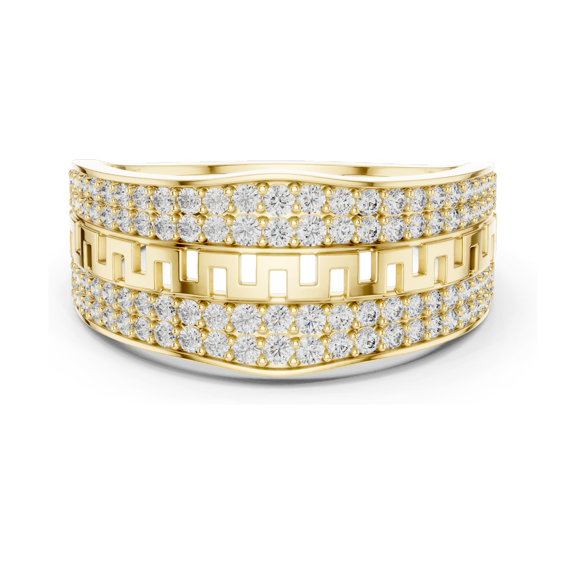 Design: Triple-row pavé with modern geometric band detailing