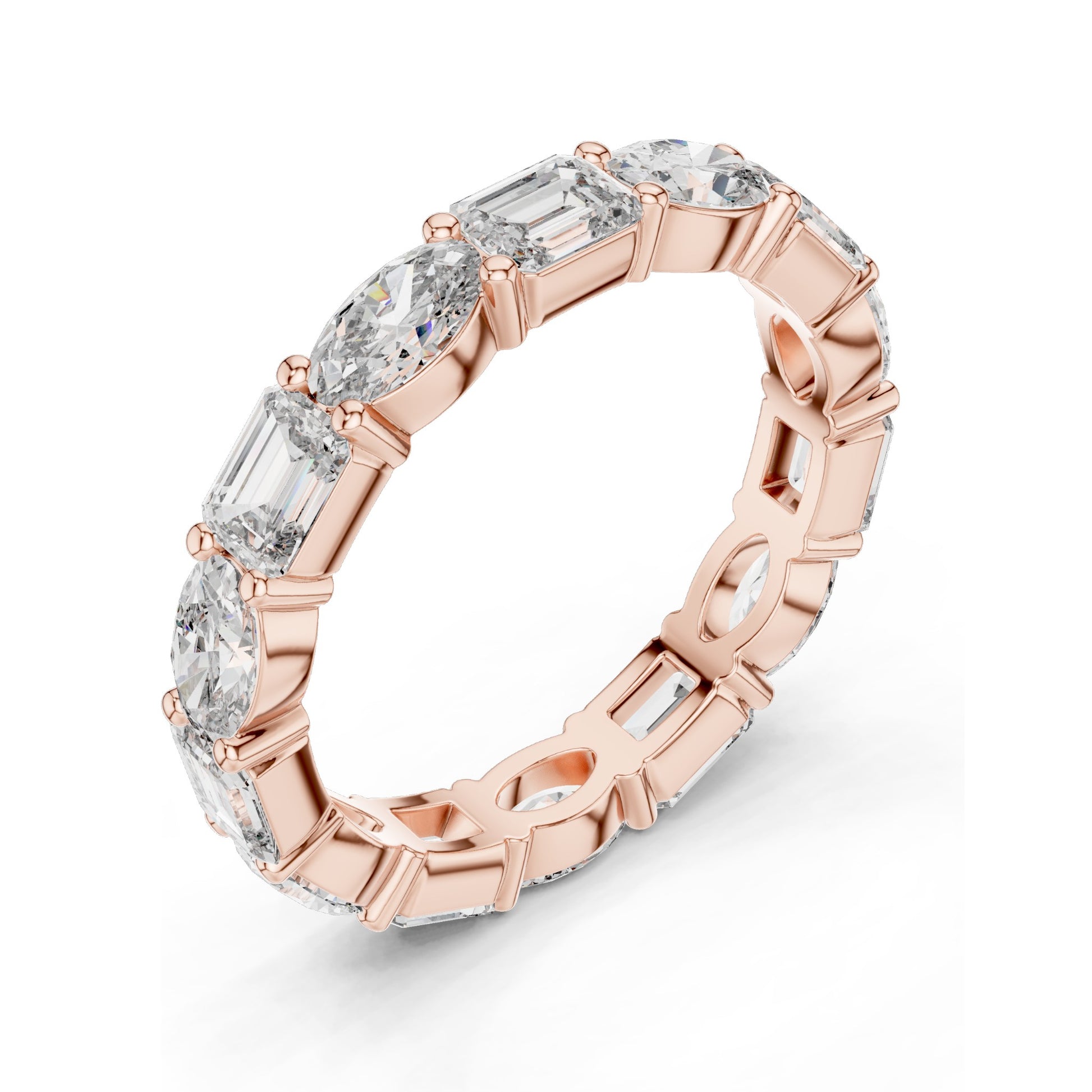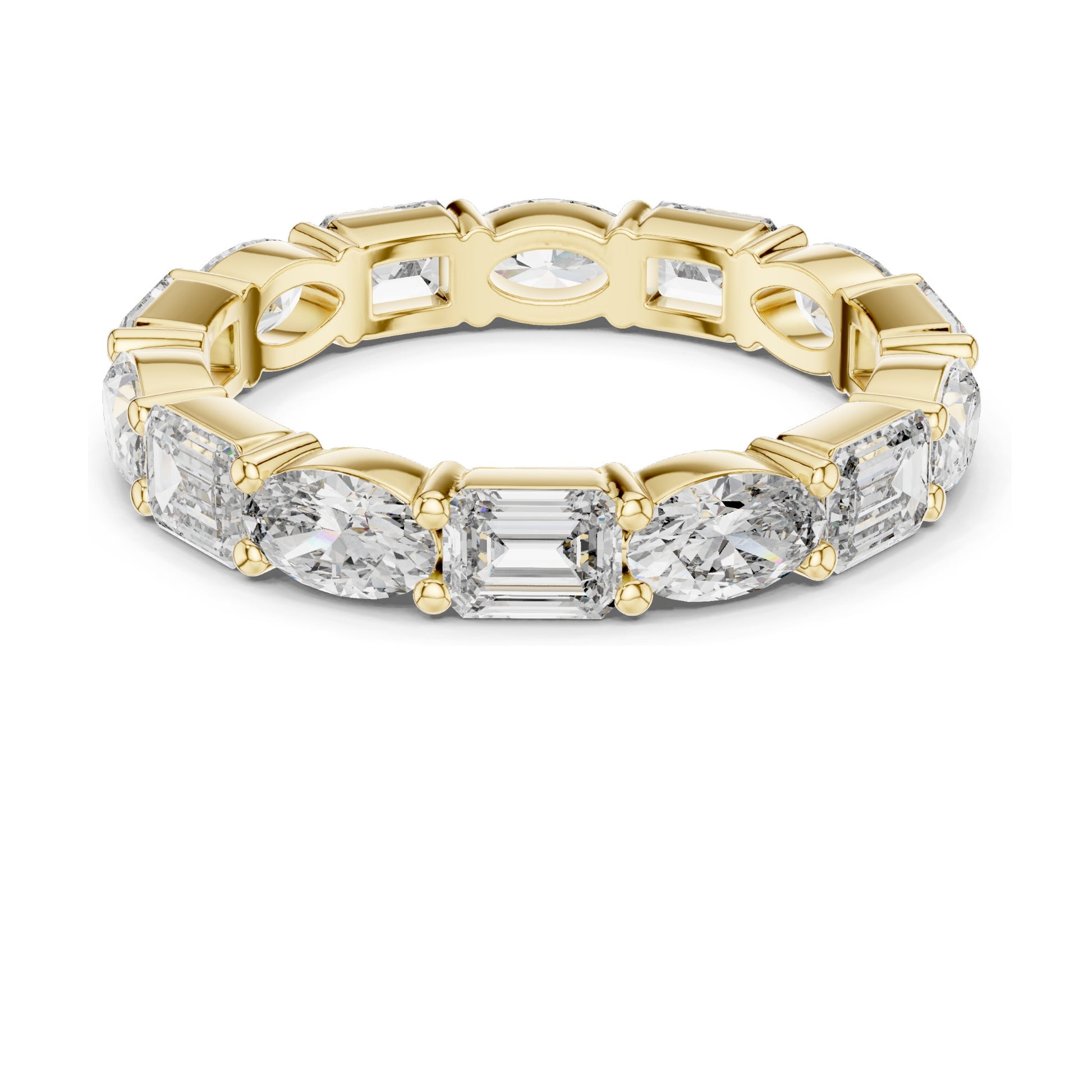 Design: Eternity Band with alternating diamond cuts for unique beauty
