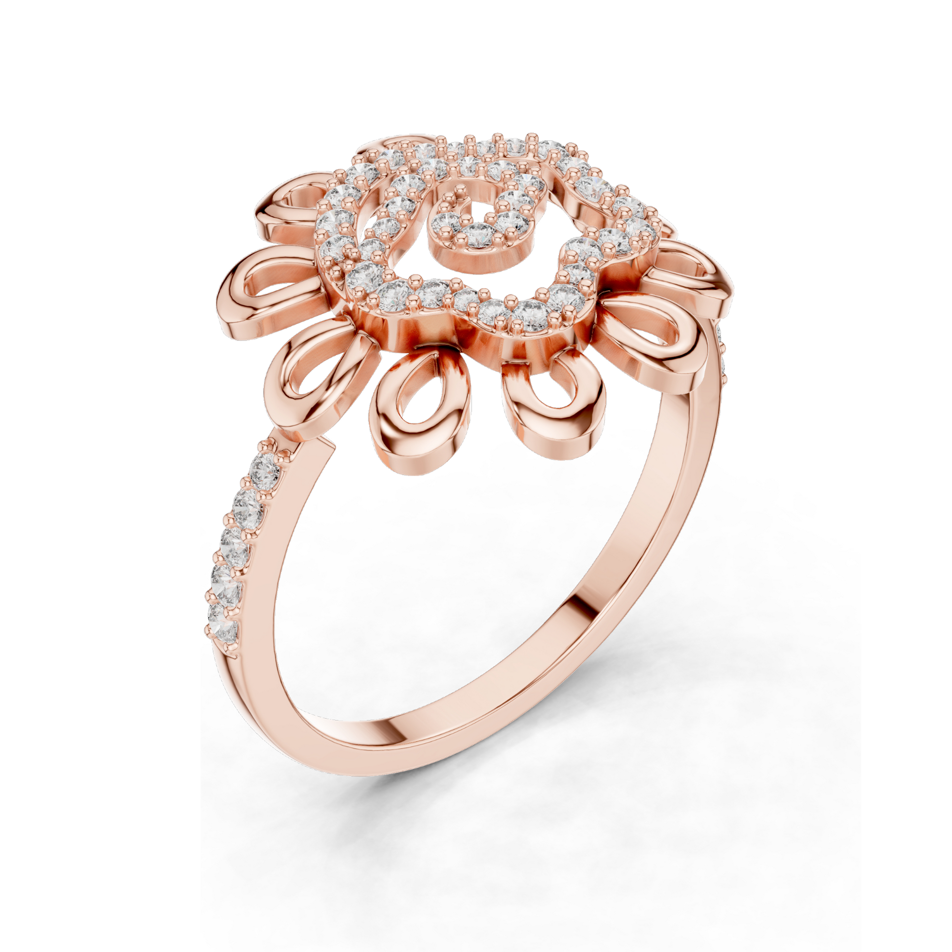 Step into elegance with this beautiful Flower-Inspired Diamond Ring, featuring 0.26 carats of lab-grown diamonds that sparkle like petals in the sunlight. This stunning ring, designed with a feminine floral motif, features diamonds meticulously set in a swirl formation, creating a look that's both modern and timeless. Whether you choose the luxurious shine of 18KT, 14KT, or 10KT gold, or the sleek appeal of 925 silver, this ring adds a radiant touch to any occasion.